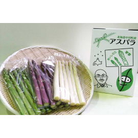 日本の畑作北限の地、北海道の中川町で収穫されたハウスアスパラ3色セットです。