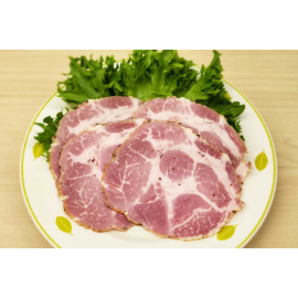 | 原材料 | 豚肉(国産)、食塩、香辛料、ブドウ糖、砂糖、水飴/酸味料、リン酸(Na)、調味料(アミノ酸等)、PH調整剤、酸化防止剤(V.C)、香料、発色剤(亜硝酸Na) | ||||||||||